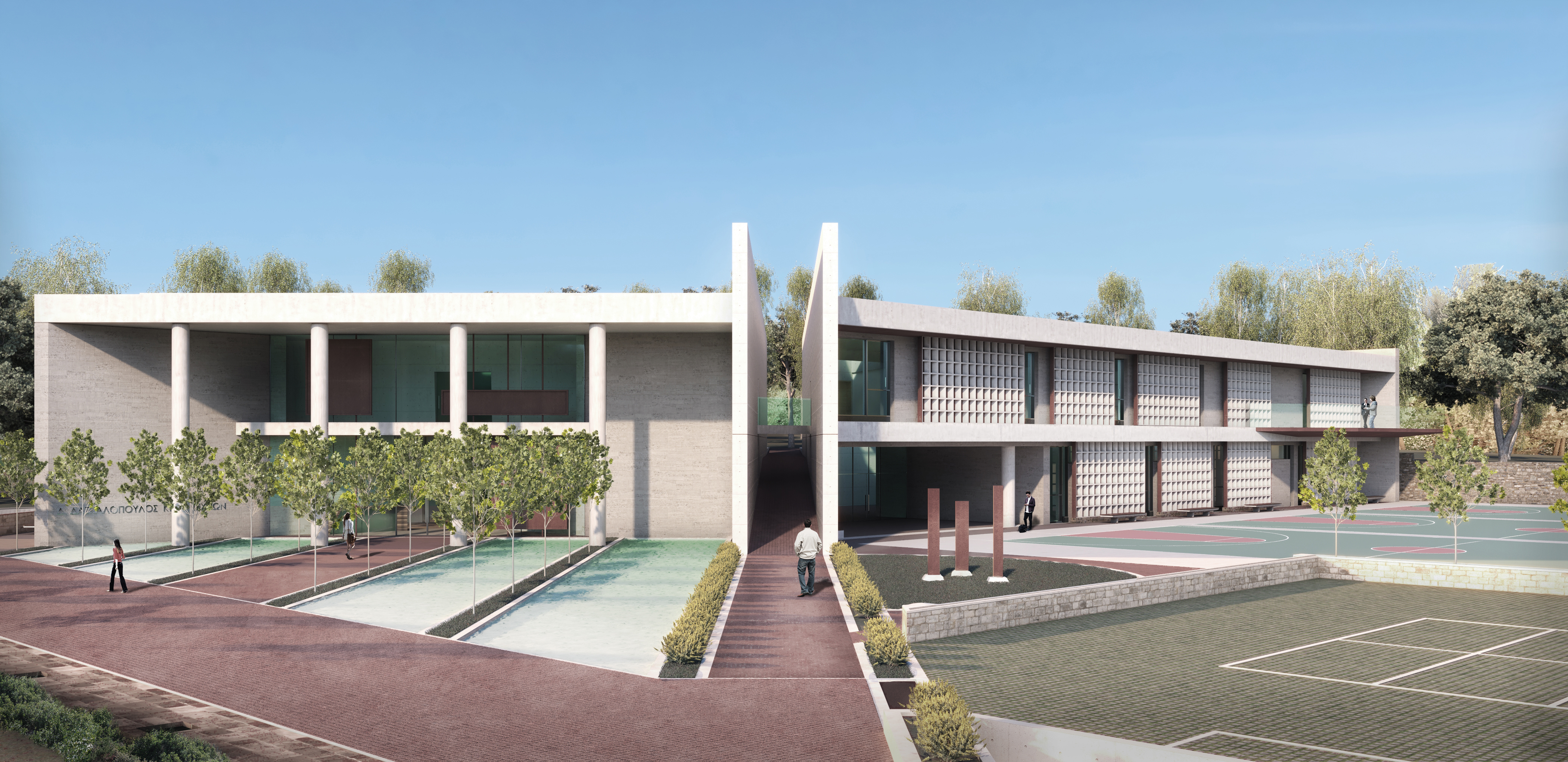 This competition entry deals with the design of an Arts building that includes various student workshops and an art gallery inside the Athens College Campus. The design of this proposal departs from the question posed through the building program on the co-existence of the Public-Gallery space and the Private- Educational space. The resolution of this tension comes through abstraction rather than typology, by taking cues from Barnett Newman’s expressionist work, that deals with the quest of the sublime and the ambiguity of the “in between” space.