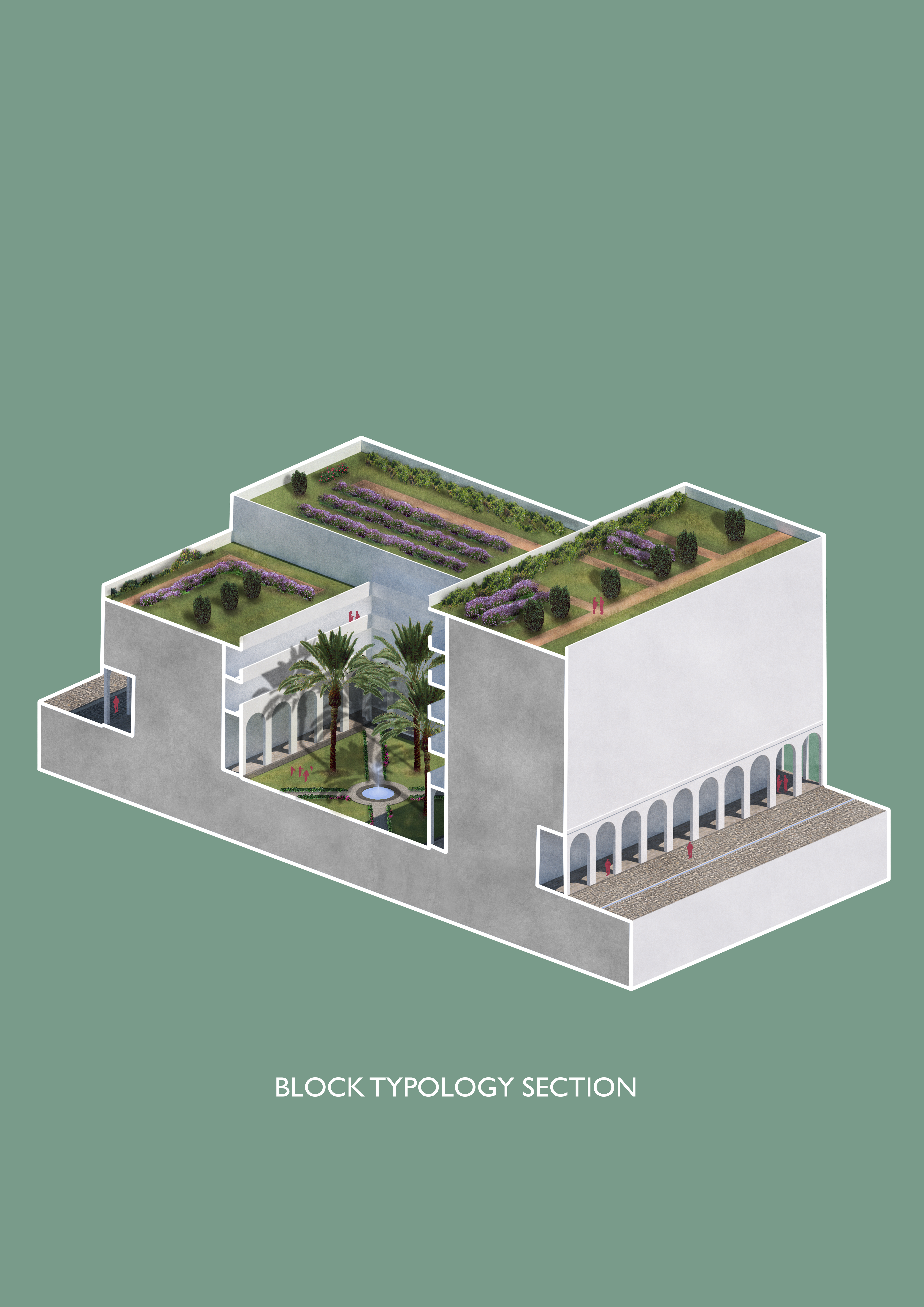 Therefore, this project proposes the re-establishment of the neglected areas around the two rivers as a cultural and commercial quarter for the city, with the confluence of them as its heart. As the city is suffering from draught due to climate change, a series of measures such as green roofs, weirs and flood parks is proposed within the masterplan, as a means of managing the limited amount of rainfall in the most efficient manner.