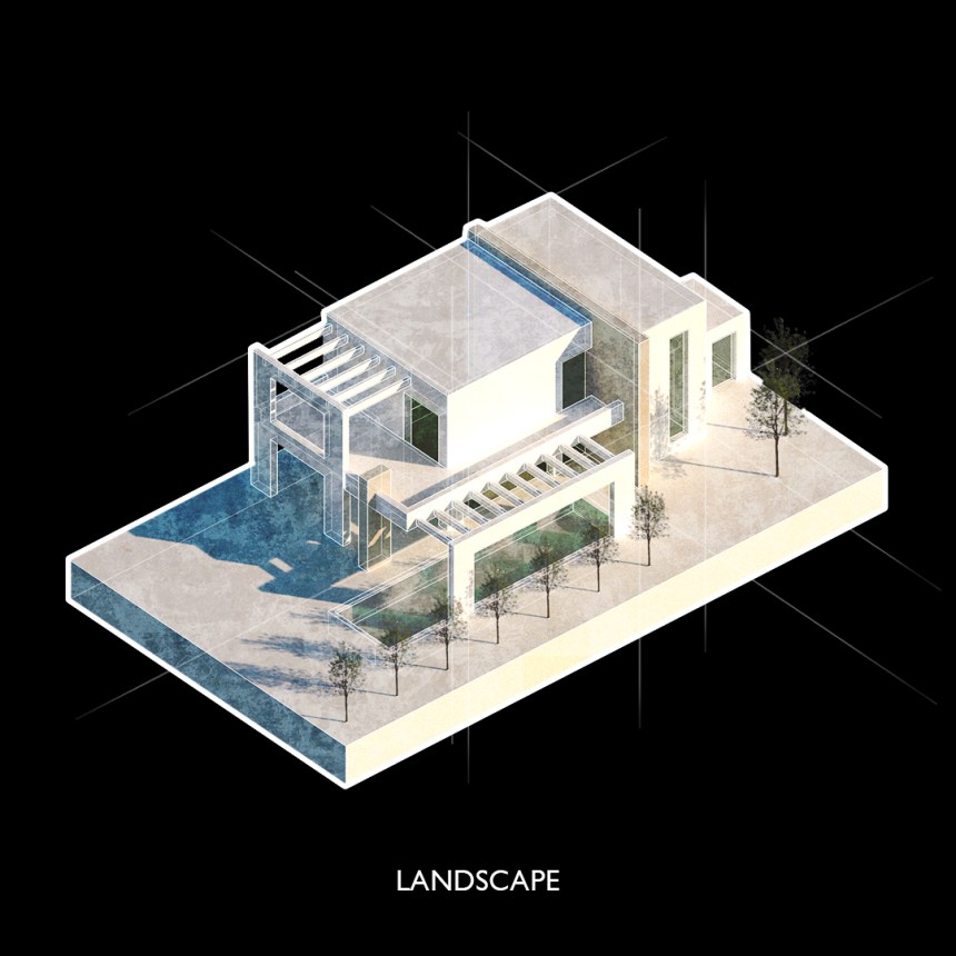 The new wall then becomes the main organizational gesture for the new home as it is used to divide the building into what Louis Kahn would describe as the servant and served areas. Therefore, the kitchen, the storage, the stairs and the guest house are grouped at the east part of the site, while the living room, the dining room the pool and the veranda on the west. The wall in between acts as a semi-transparent notional barrier between the two zones on the interior and as a rigid architectural element which divides the form in two parts according to function on the exterior.